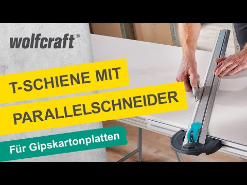 Mit der T-Schiene und dem Parallelschneider meistern Sie das Zuschneiden von Gipskartonplatten mit Leichtigkeit und Präzision. In nur 3 Arbeitsschritten erzielen Sie saubere Ergebnisse: geführtes Anritzen, Brechen, Durchtrennen der Kartonschicht – fertig. Dabei garantieren Ihnen die bewegliche T-Schiene mit Winkelfunktion und die leicht lesbare Skala eine präzise, winkelgenaue Führung ohne Gradabweichungen. So sind exakte Schnittkanten in Serie möglich, was Ihnen die anschließende Spachtel- und Schleifarbeit deutlich erleichtern wird. Der dazugehörige Parallel- und Streifenschneider ist mit einer leistungsstarken Trapezklinge ausgestattet. Er kann einfach auf dem Schneidschlitten verschoben und arretiert werden und sorgt für geführtes Schneiden in Serie: Klinge ausfahren, mithilfe der T-Schiene über die gesamte Platte führen, brechen, mit dem Cutter abtrennen und fertig.