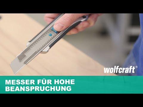 Wenn Sie regelmäßig starke Materialien wie Dachpappe, Gipskarton, dicke Kartons oder starke Folien schneiden müssen, sind Sie mit dem Profi-Abbrechklingenmesser gut ausgerüstet. Mit dem ergonomisch geformten Metallgehäuse liegt das Messer komfortabel in der Hand und Sie führen es mit maximaler Kraftübertragung durch den Werkstoff. Die Stabilität wird durch die Metall-Klingenführung zusätzlich unterstützt. Präzise, kontrollierte Schnitte gelingen Ihnen dadurch ermüdungsarm und sicher. Durch den integrierten Feststellknopf arretiert die Abbrechklinge in der gewünschten Position, so sitzt sie ohne Bewegungsspielraum in der Führung immer fest und das Verletzungsrisiko wird minimiert. Die Klingen dieses langlebigen Helfers können Sie nachkaufen und werkzeuglos ersetzen. Eine Klinge ist inklusive.