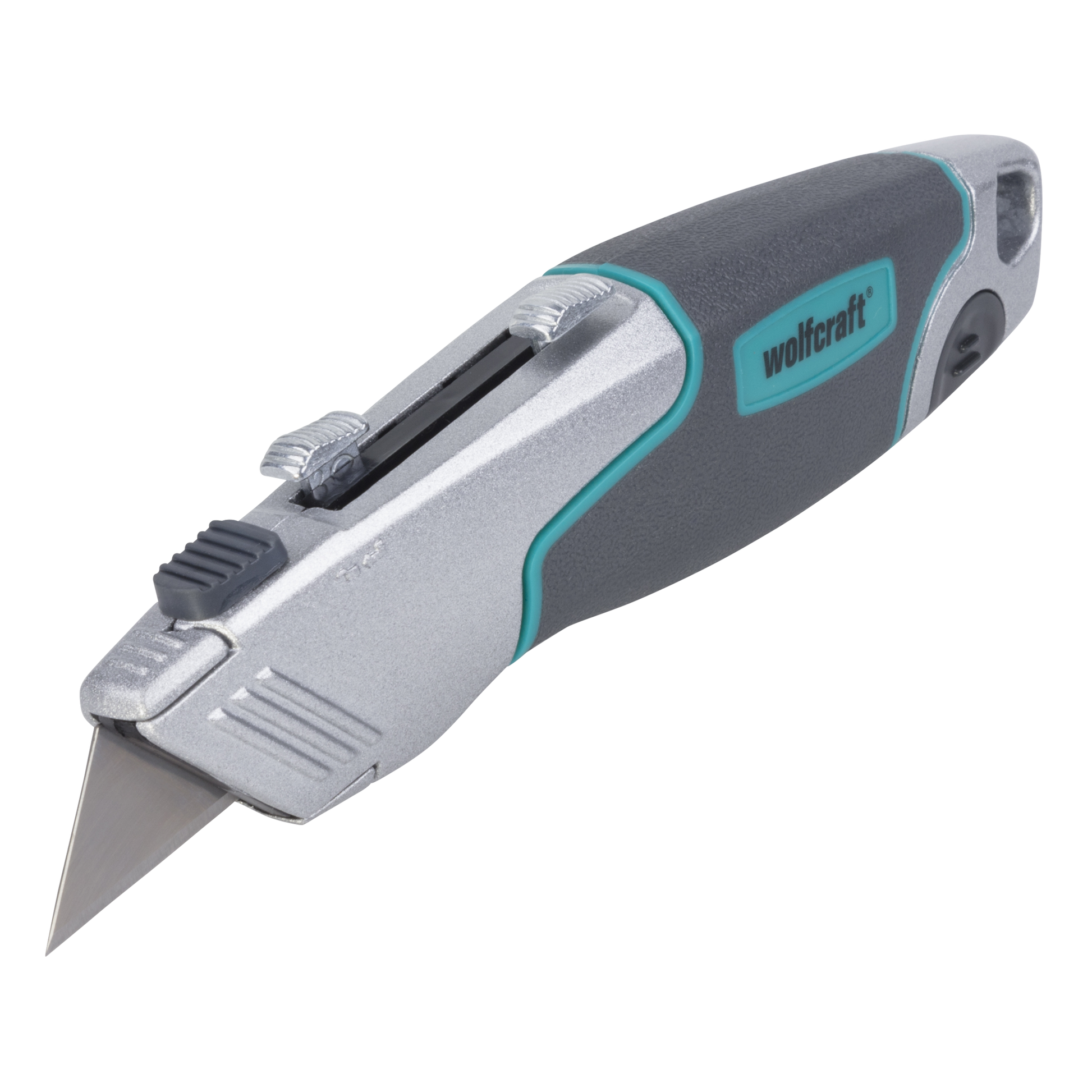 - robustes Metallgehäuse mit Klingenmagazin und ergonomischer Weichzone
