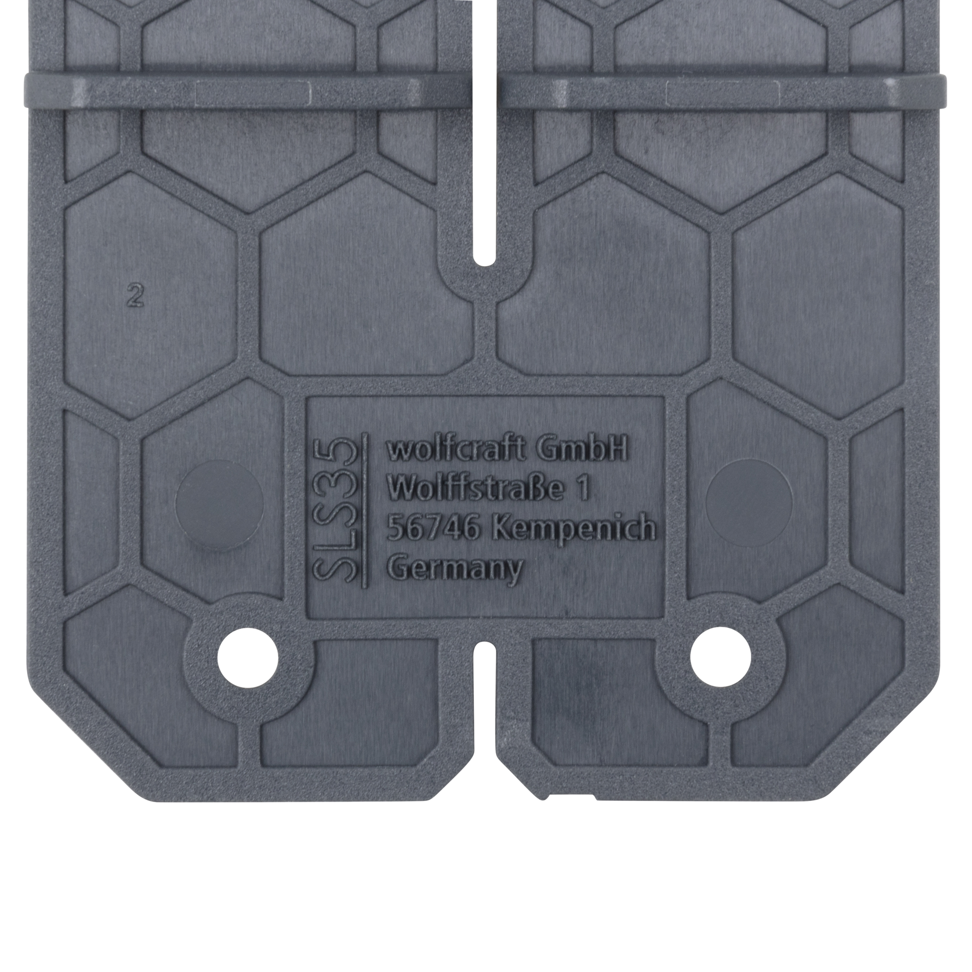 Die zwei Bohrschablonen mit dem integrierten Anschlag lassen sich leicht zwischen Tür und Korpus klemmen und helfen Ihnen, diese Elemente parallel zueinander auszurichten. Dank der Kennzeichnungen in der Schablone ist gleichzeitig garantiert, dass Sie die Markierungen und Bohrpositionen für die Installation Ihrer Ø-35-mm-Topfscharniere mit dem korrekten Abstand zur Außenkante ermitteln.