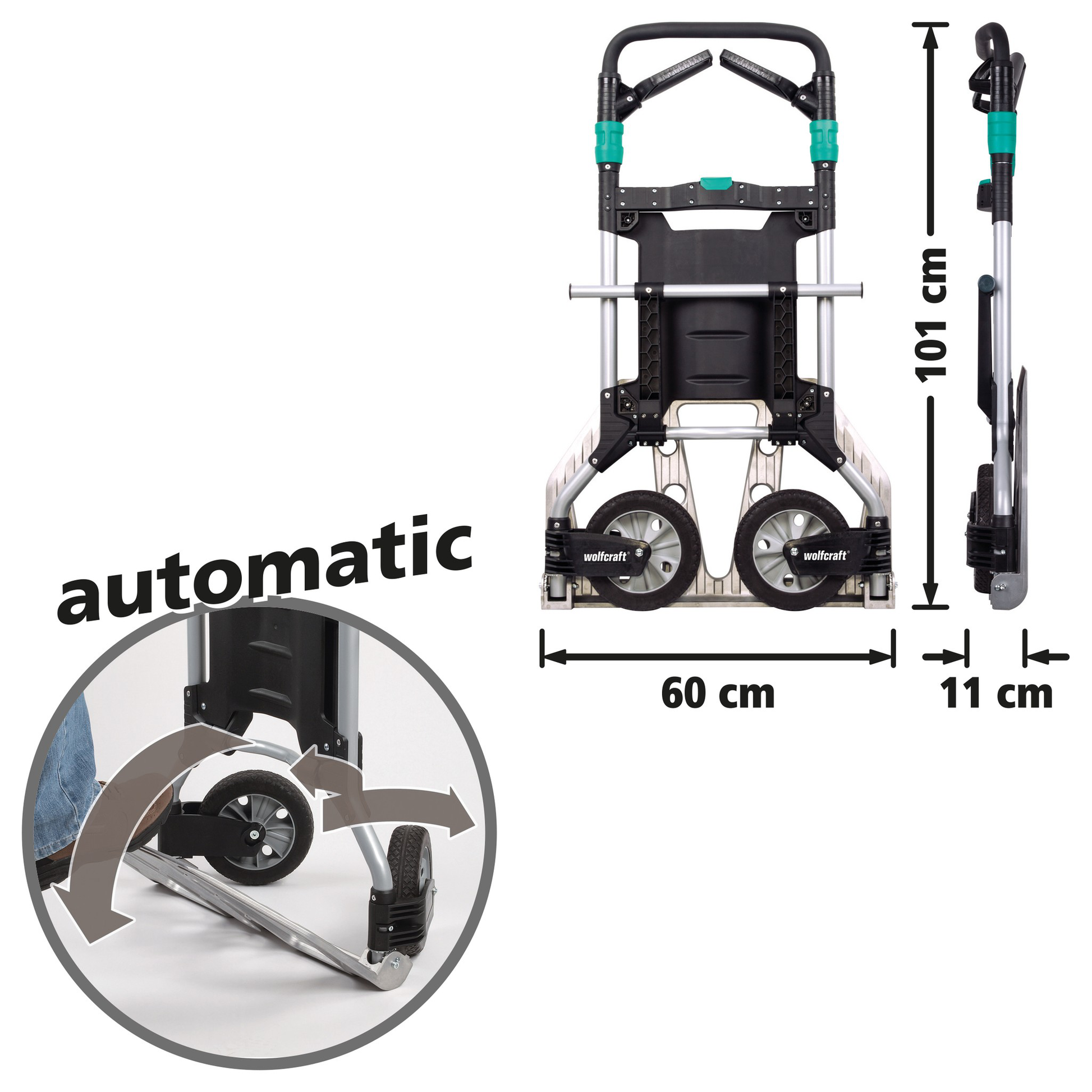 - klappbar, treppengängig mit extragroßer Schaufel und abgerundeter Anlageplatte für Lasten bis 200 kg