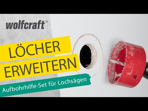 Die Aufbohrhilfe von wolfcraft ist die erste sichere Standardlösung zur sauberen und zentrierten Erweiterung vorhandener Lochbohrungen mit einer Lochsäge. Die clevere Innovation besteht aus einem hochwertigen konisch zulaufenden Kunststoffzylinder, den Sie mit dem integrierten Gewinde einfach in die bereits vorhandene Lochbohrung eindrehen. In der Mitte der Aufbohrhilfe sitzt eine Stahlbuchse, die Zentrierbohrer mit Ø 6–8 mm aufnimmt und die Lochsäge dadurch sicher führt. Auch die zentrierte Ausrichtung zur bereits bestehenden Bohrung ist mit der Aufbohrhilfe garantiert. So bewahren Sie bei Serienbohrungen, z. B. bei der Umrüstung von Halogendeckenspots auf ein größeres LED-System, ein gleichmäßiges Lochbild. Mit der enthaltenen Eindrehhilfe ziehen Sie den Sitz im Bohrloch noch einmal nach, sodass die Aufbohrhilfe fest im Bohrloch fixiert ist. Einfach die Lochsäge ansetzen, bohren und die Aufbohrhilfe abschließend mit dem Bohrkern entnehmen. Auch das Arbeiten über Kopf erledigen Sie mit der Aufbohrhilfe souverän.