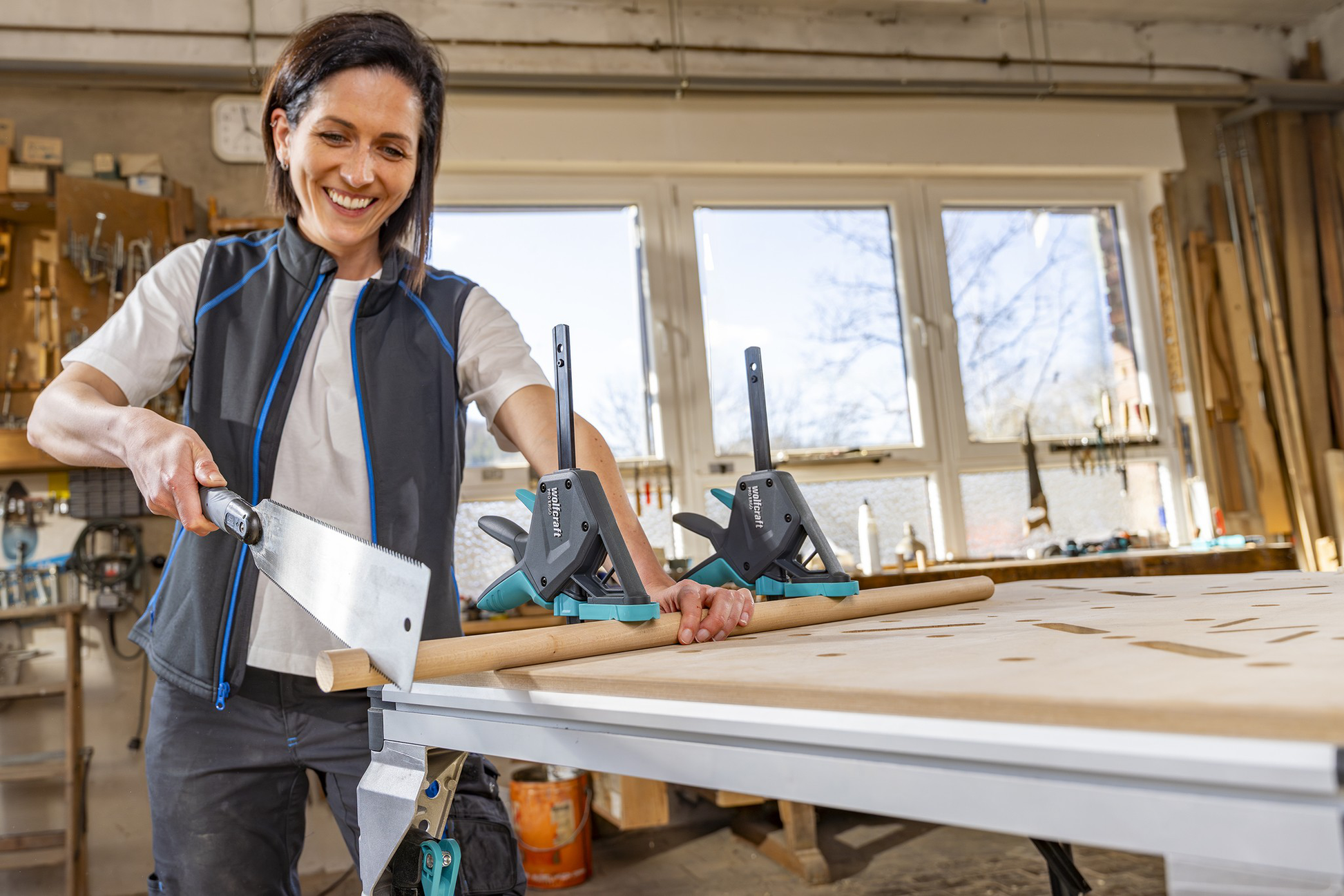 - 2 Einhandzwingen PRO ERGO, Spannweite pro Zwinge 450 mm – ideal für höchste professionelle Ansprüche
