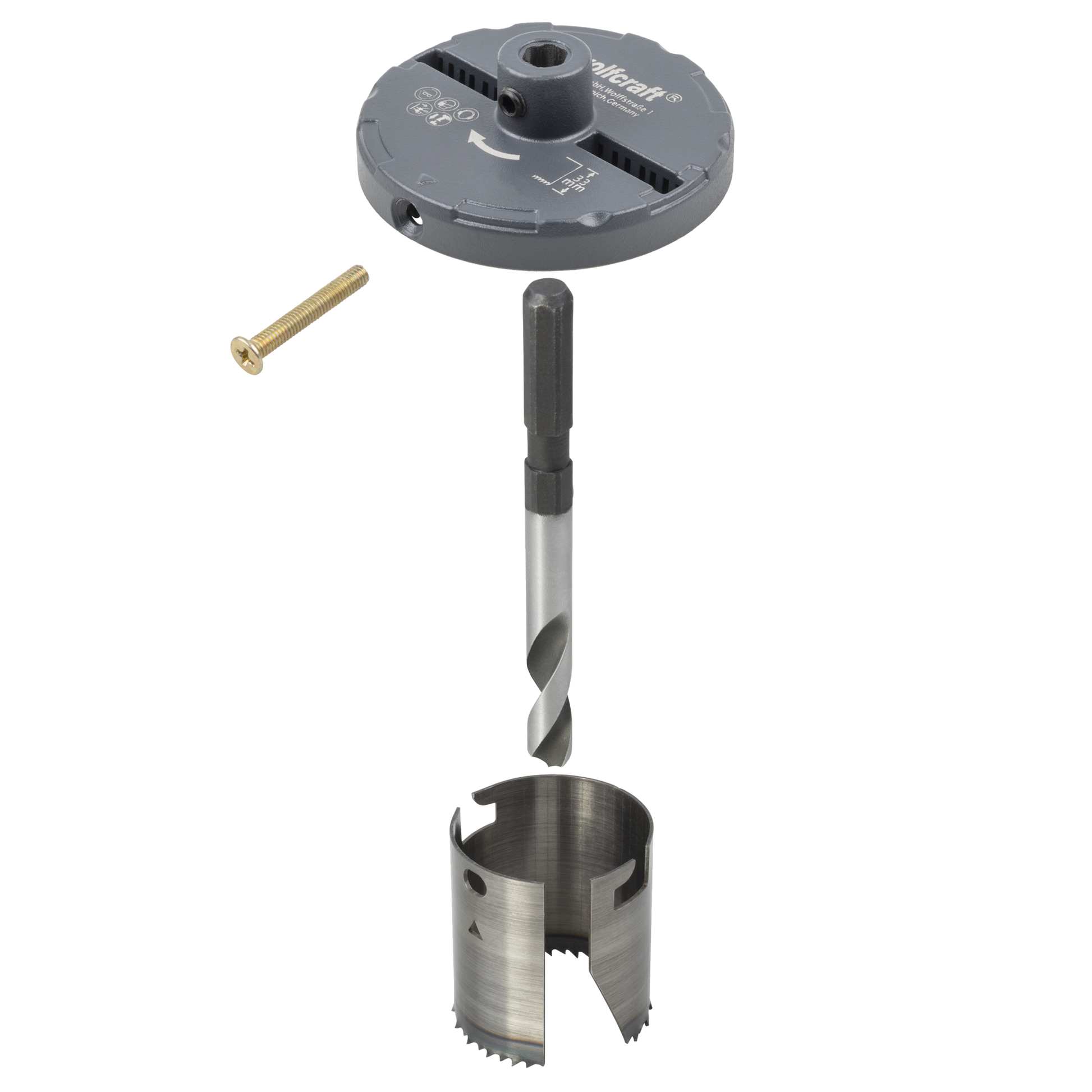 - 5 lames à changement rapide d'un (Ø 60, 68, 74, 80, 95 mm), profondeur de coupe 40 mm, pour de nombreux projets d'aménagement intérieur
