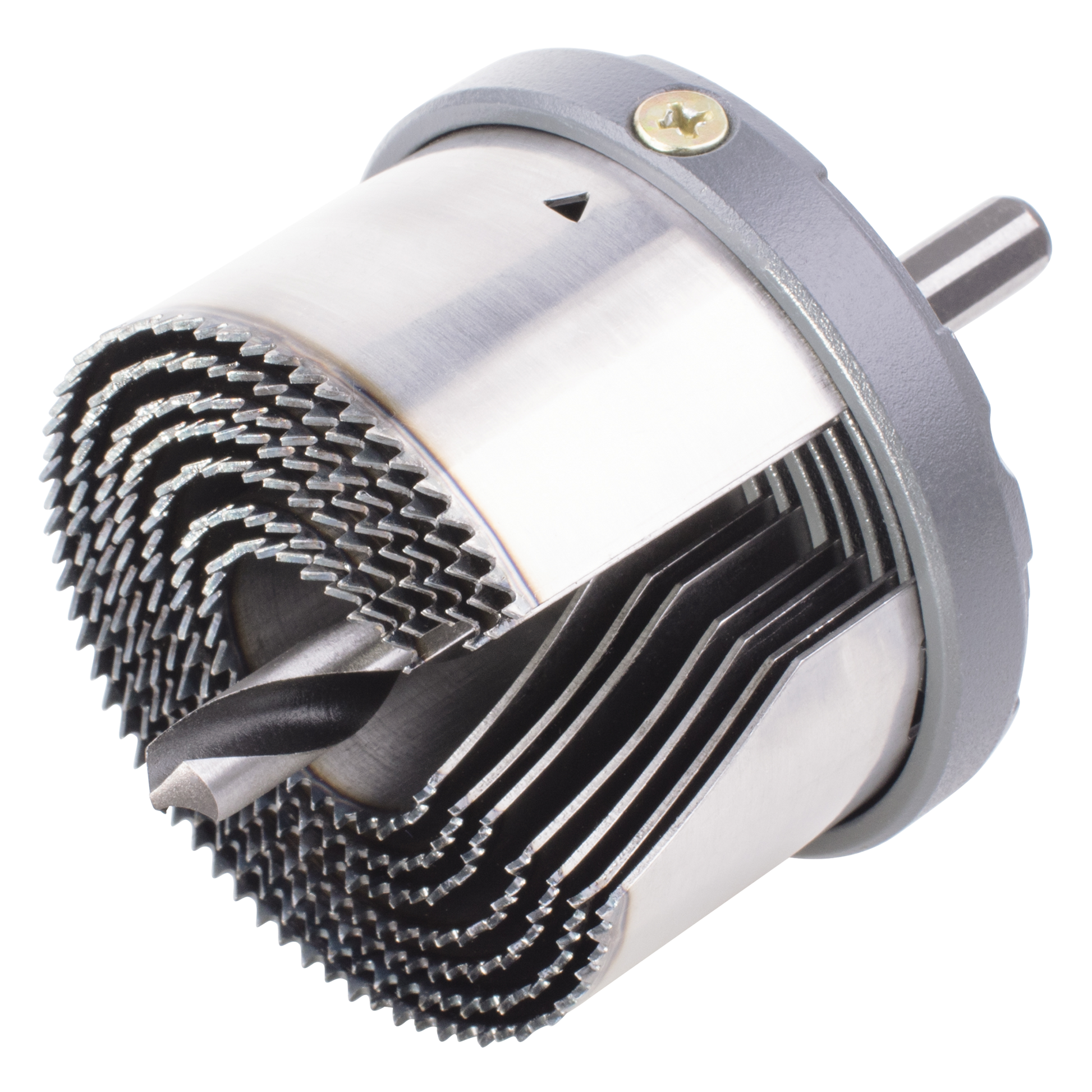 Scie avec 7 lames à changement rapide, Ø 25–62 mm, profondeur de coupe 33 mm