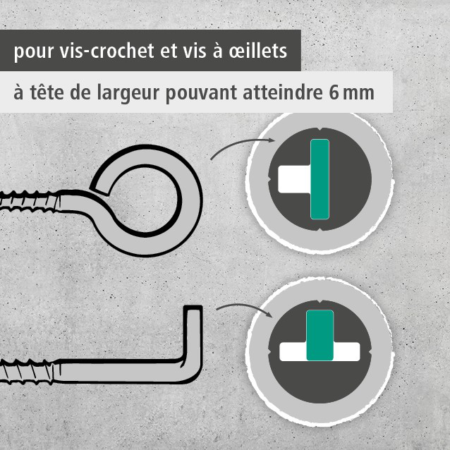 Pour fixer facilement des vis-crochets et des vis à œillet