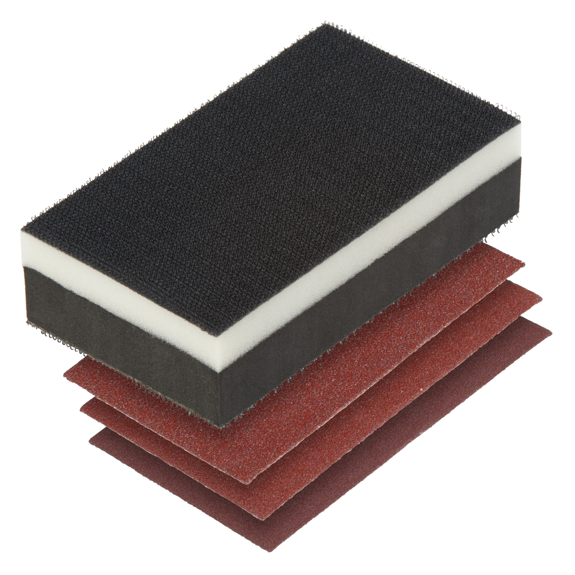 | Additional product specification | Hand-Held Sander with Easy-Fix Fibre on Two Sides duo sponge with hard side for sanding surfaces and soft side for sanding contours |
