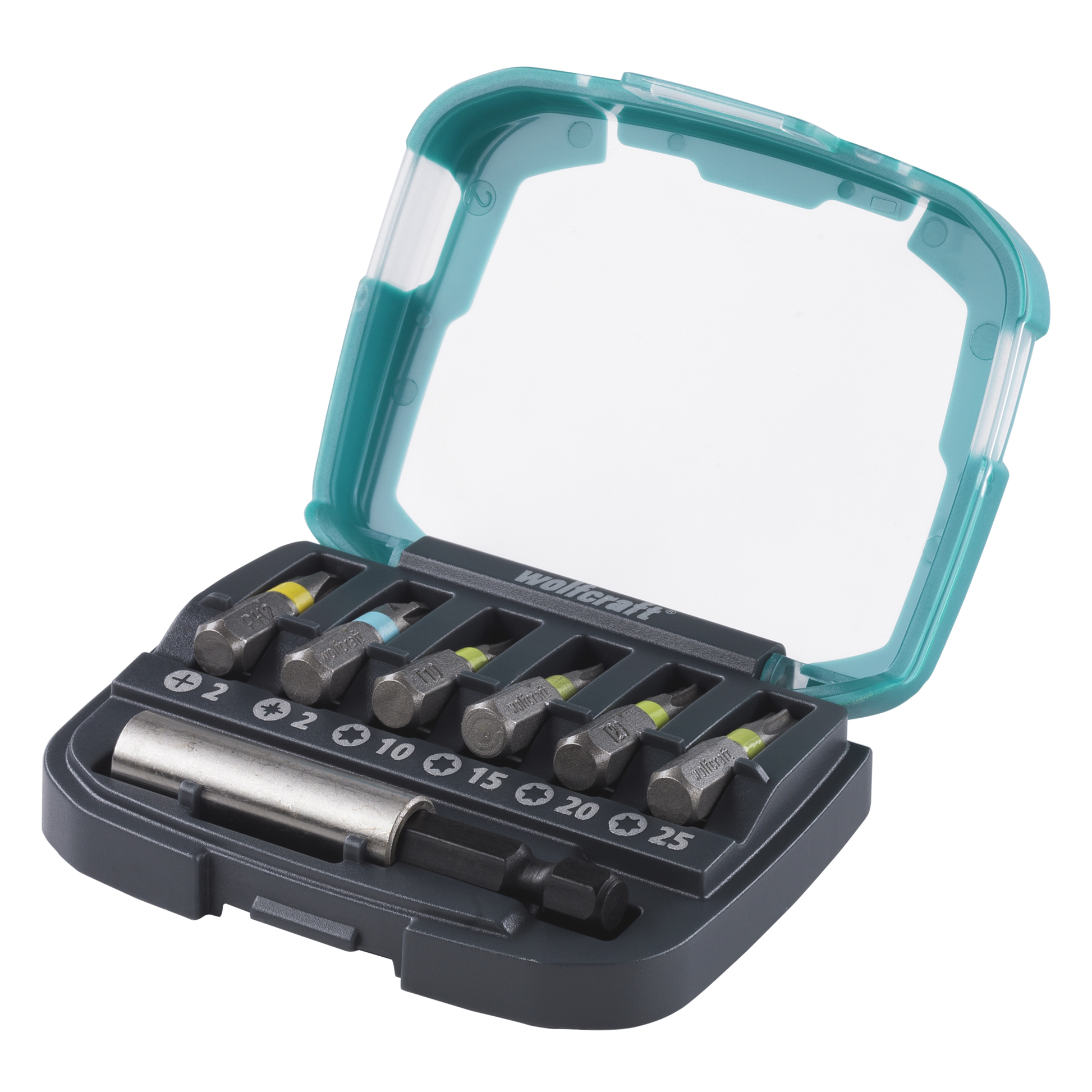 - 6 embouts Solid pour vis à empreinte cruciforme (PH/PZ) et TORX® (T) en différentes tailles, avec porte-embouts magnétique