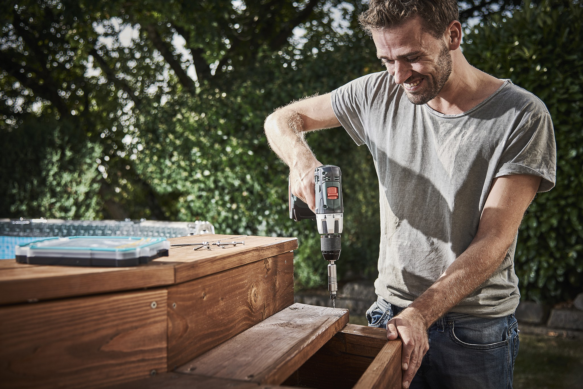 Avec les outils compris et les 2 porte-outils doubles, vous êtes paré à toutes les éventualités : 3 forets, 7 embouts, un foret d'amorçage avec fraisoir, un fraisoir et un embout à crochets pour percer, fraiser, visser et poser des crochets dans différents matériaux. Une clé hexagonale (SW 2) est également fournie, destinée au serrage de la vis de fixation.