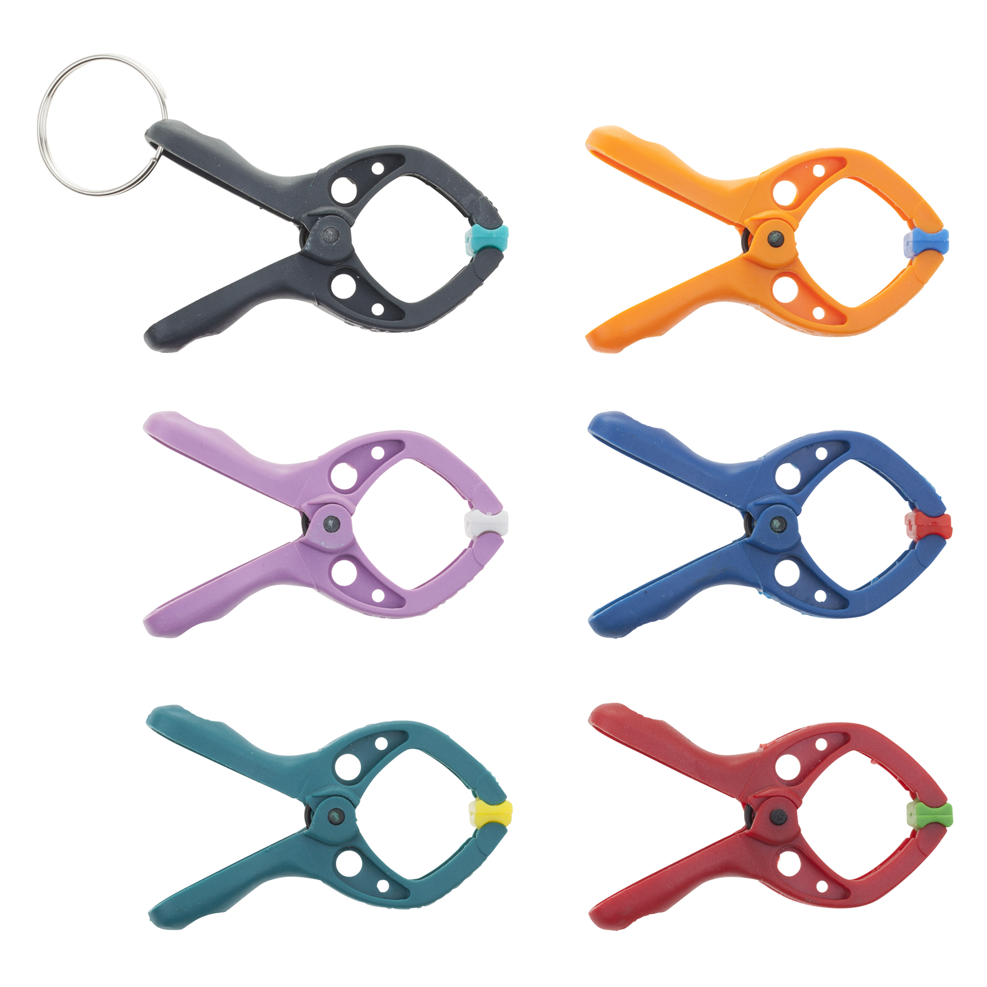 Les six petites pinces à ressort d'une ouverture de 20 mm sont des outils polyvalents pour le quotidien à la maison, ainsi que pour les projets de loisirs et de bricolage. Elles sont faciles à utiliser d'une seule main et demandent peu de force. Les mors de serrage mobiles permettent une préhension optimale et transmettent la force selon l’angle idéal. La poignée avec zone de préhension ergonomique permet une prise en main confortable et ergonomique. Grâce à leur structure ajourée, les pinces à ressort sont très résistantes et indéformables. L'anneau porte-clés inclus permet d'attacher les pinces à ressort au trousseau de clés, idéal pour une utilisation spontanée en déplacement. Le kit comprend un assortiment de couleurs.