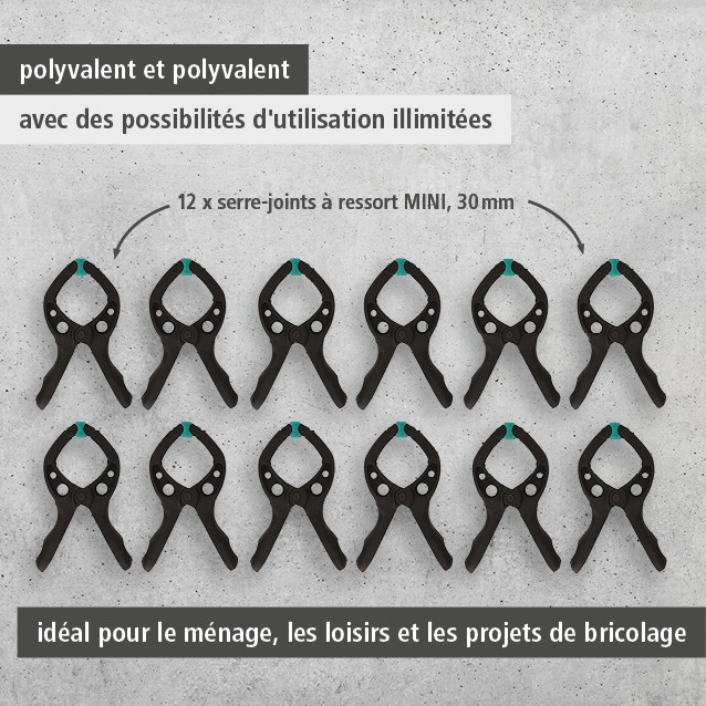 Petite pince à ressort d'une ouverture de 30 mm pour de multiples tâches au quotidien à la maison, ainsi que pour les projets de loisirs et de bricolage