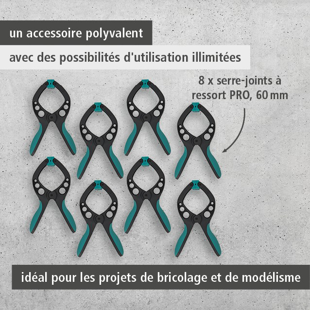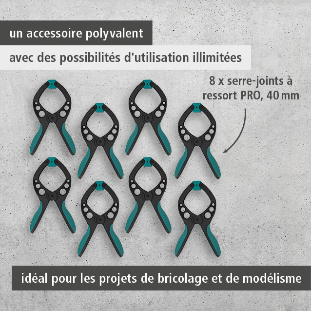Pince à ressort polyvalente pour les projets de bricolage et de modélisme, par exemple pour fixer et coller des éléments à assembler