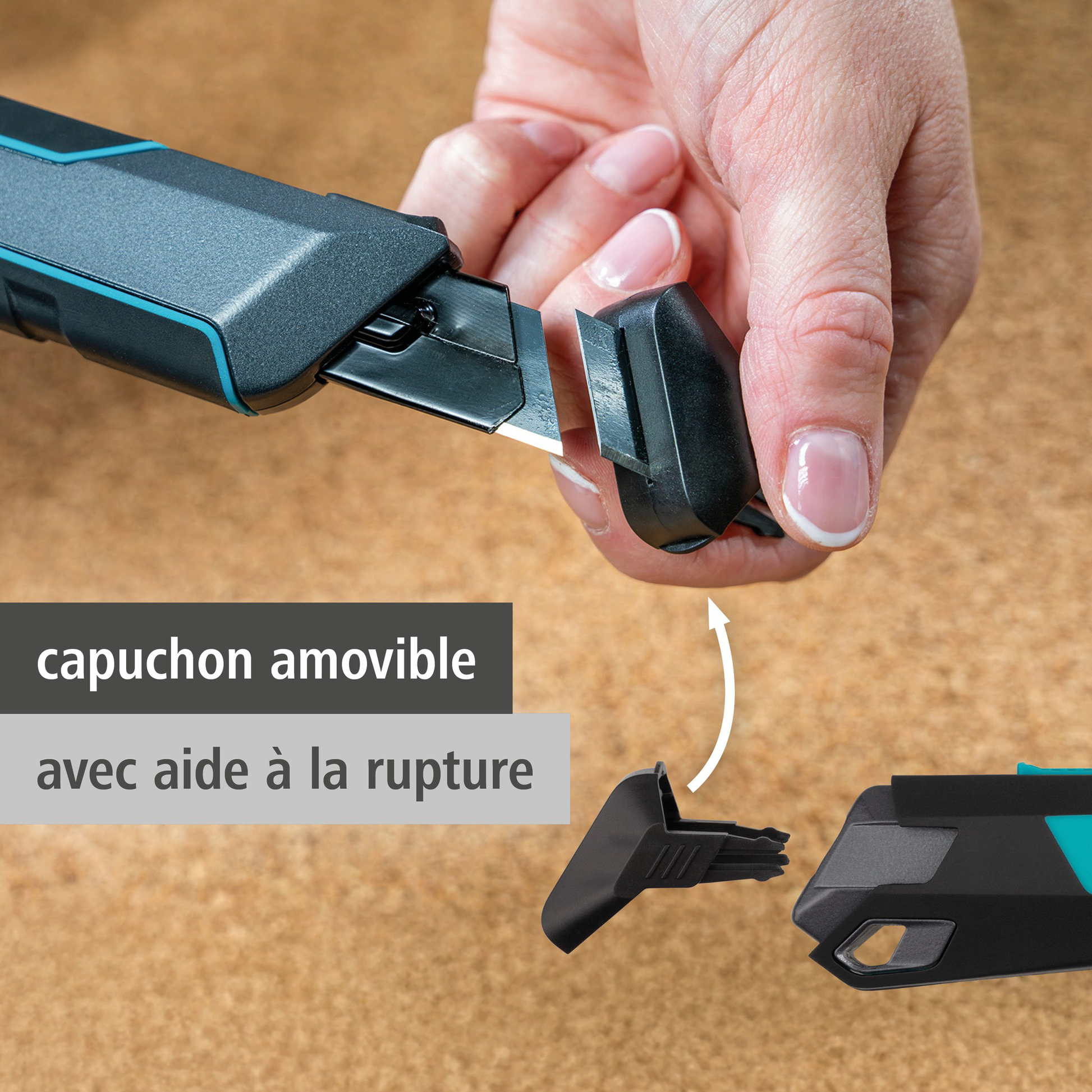 - capuchon amovible avec logement pour casser la lame en sécurité