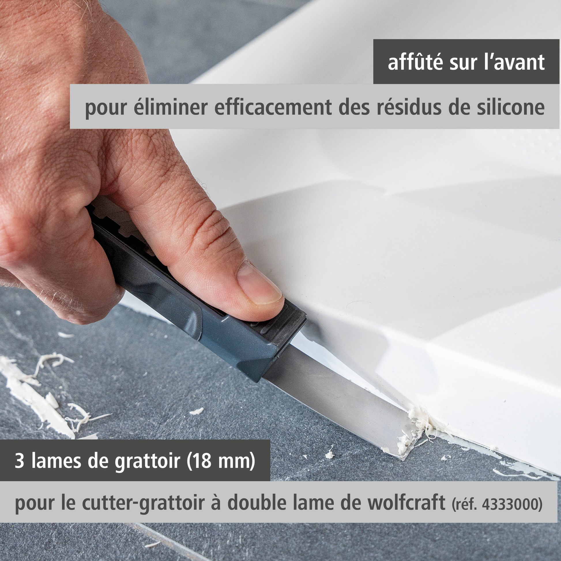 3 lames de grattoir (18 mm) pour l'utilisation dans le cutter-grattoir à double lame de wolfcraft (réf. 4333000)