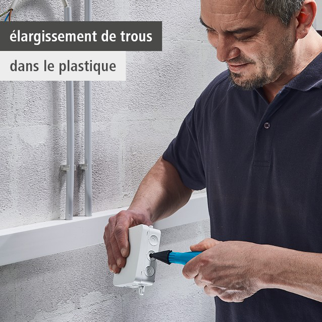 - Géométrie spéciale à 9 tranchants pour élargir à la main des trous dans le plastique, par ex. pour les passages de câbles