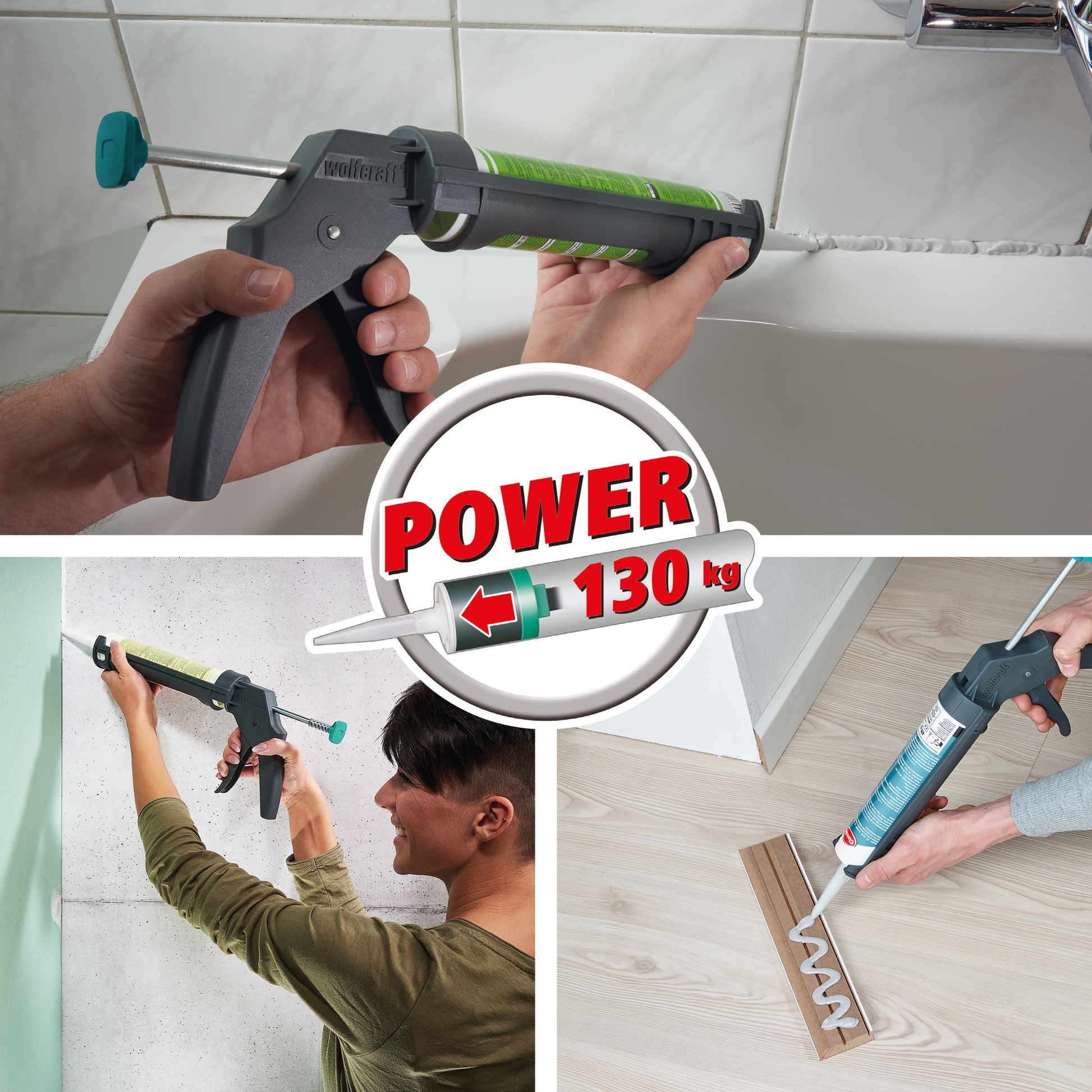- avec une pression de 130 kg, il convient aux travaux simples avec l'utilisation de silicone et d'acrylique
