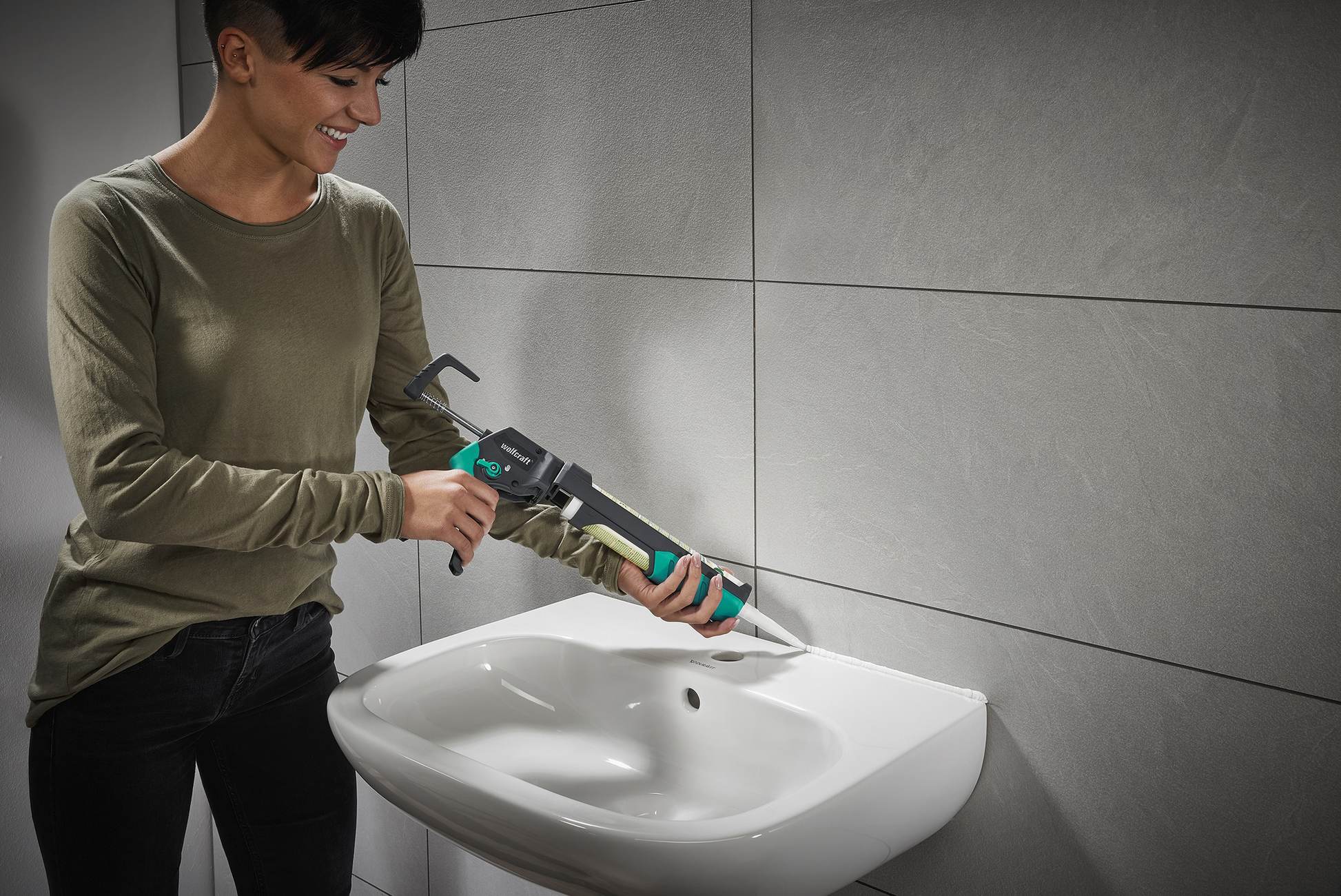 Grâce à sa capacité de pression d'extrusion de 180 kg, le MG 400 convient à l'application de silicone, d'acrylique mais également des colles sans effort convient pour l'utilisation des cartouches de 310 ml. Pour une bonne prise en main, avec le MG ERGO, en 1 réglage rapide, vous pouvez adapter l'écartement de la poignée selon la taille de votre main. Ainsi, la poignée bi-matière offre une prise en main confortable et ajustée et permet de travailler sans fatiguer sa main, même lors d'utilisations prolongées. Pour ajuster l'angle de travail, vous pouvez tourner le porte-cartouche sur 360°. La fonction stop-goutte automatique empêche le matériau de couler après la pose et assure des résultats propres. Le crochet pour échelle offre également un meilleur confort. Vous pouvez y accrocher le MG 400 facilement, s'il faut vous libérer une main.