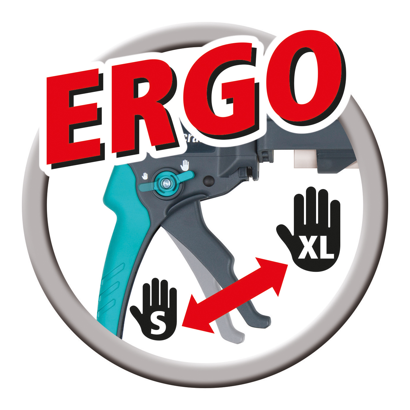 - l'écartement de la poignée est adaptable individuellement selon la taille de la main de l'utilisateur, pour une prise en main confortable