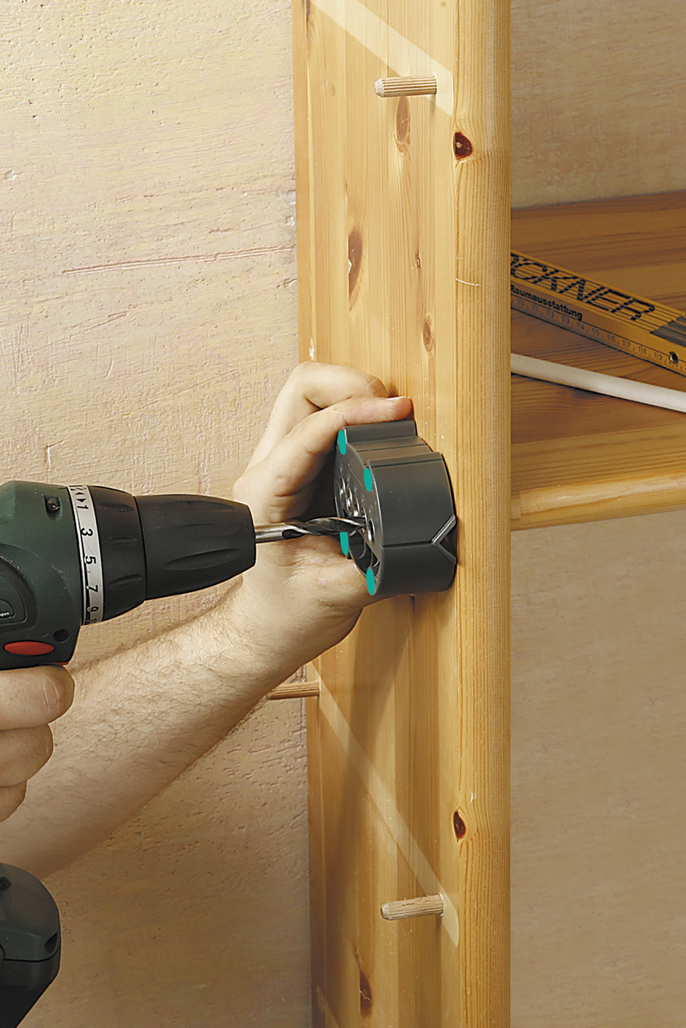 Le guide de perçage mobile accumobil est la solution parfaite dès qu’il s’agit de percer des trous à un angle de 90°. Sa construction pratique assure un maniement facile, et le guide permet d’effectuer un positionnement sûr sur des surfaces lisses. Les patins en caoutchouc apportent un surcroît de stabilité et protègent les surfaces des détériorations. Le placement sur un matériau rond ou sur des arêtes ne pose pas non plus de problème car les rainures en V intégrées assurent la fixation en toute fiabilité. Vous pouvez ainsi effectuer sans effort des tâches de perçage, même difficiles. Les lignes de positionnement servent à l’orientation et par conséquent à percer avec une grande précision. Les douilles en métal sont destinées aux forets de diamètre de 4, 5, 6, 8 et 10 mm. Ainsi, le guide de perçage mobile accumobil est un outil indispensable dans les applications les plus diverses.