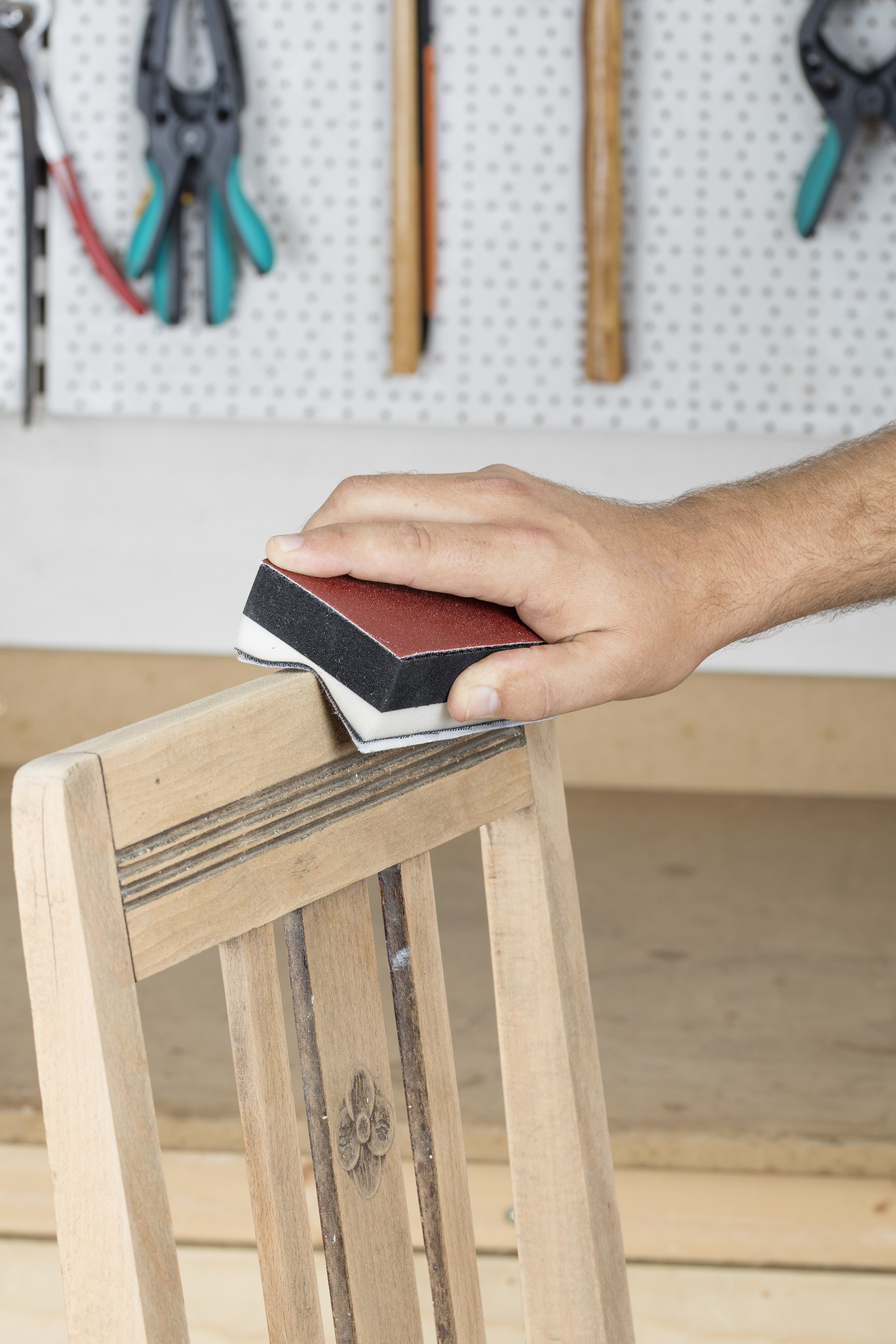 - Cale à poncer avec revêtement auto-agrippant des deux côtés pour les surfaces et les contours