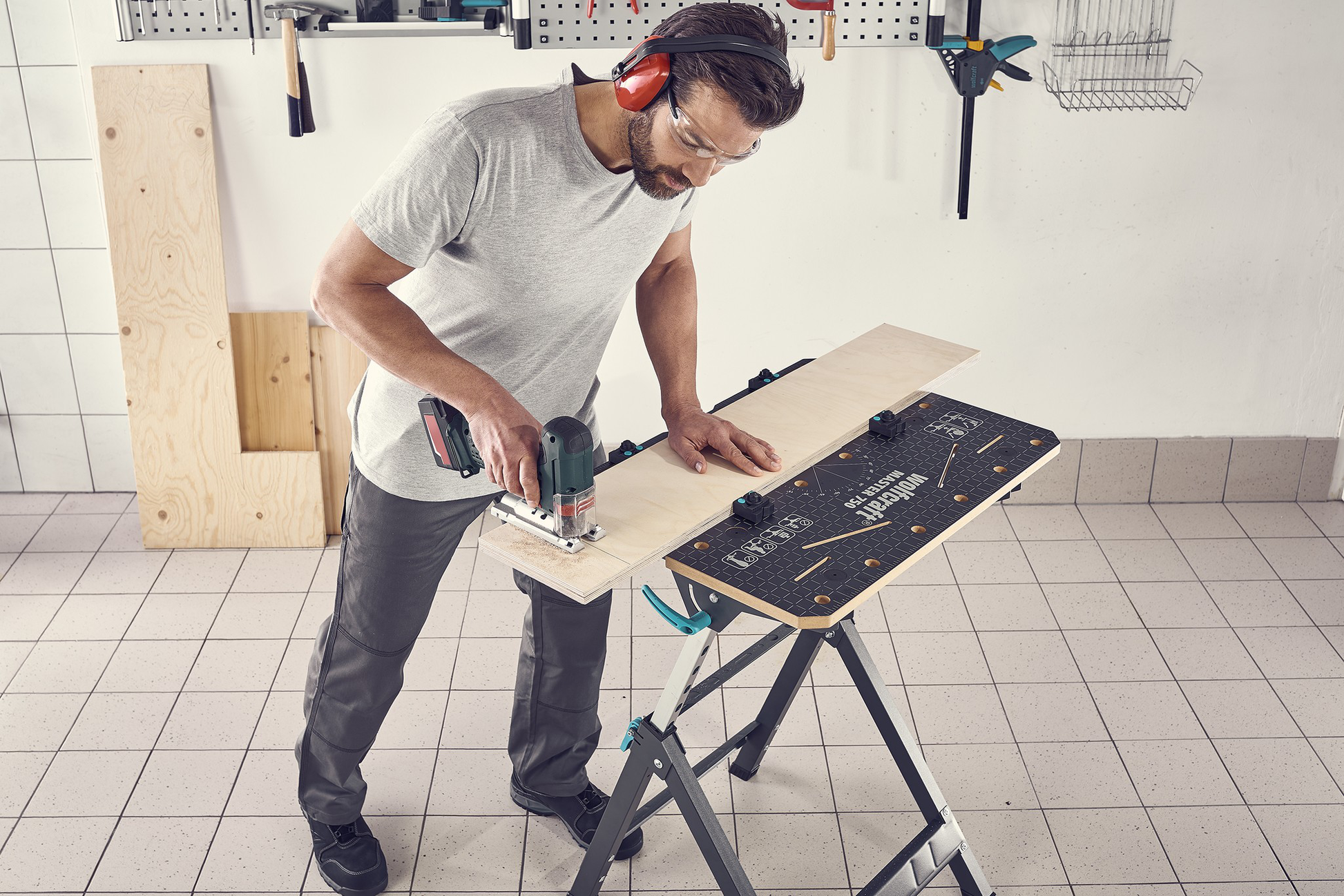 - compatible avec tous les trous de 20 mm, comme par exemple dans les établis de la série MASTER de wolfcraft, pour un serrage flexible, à plat ou de pièces rondes