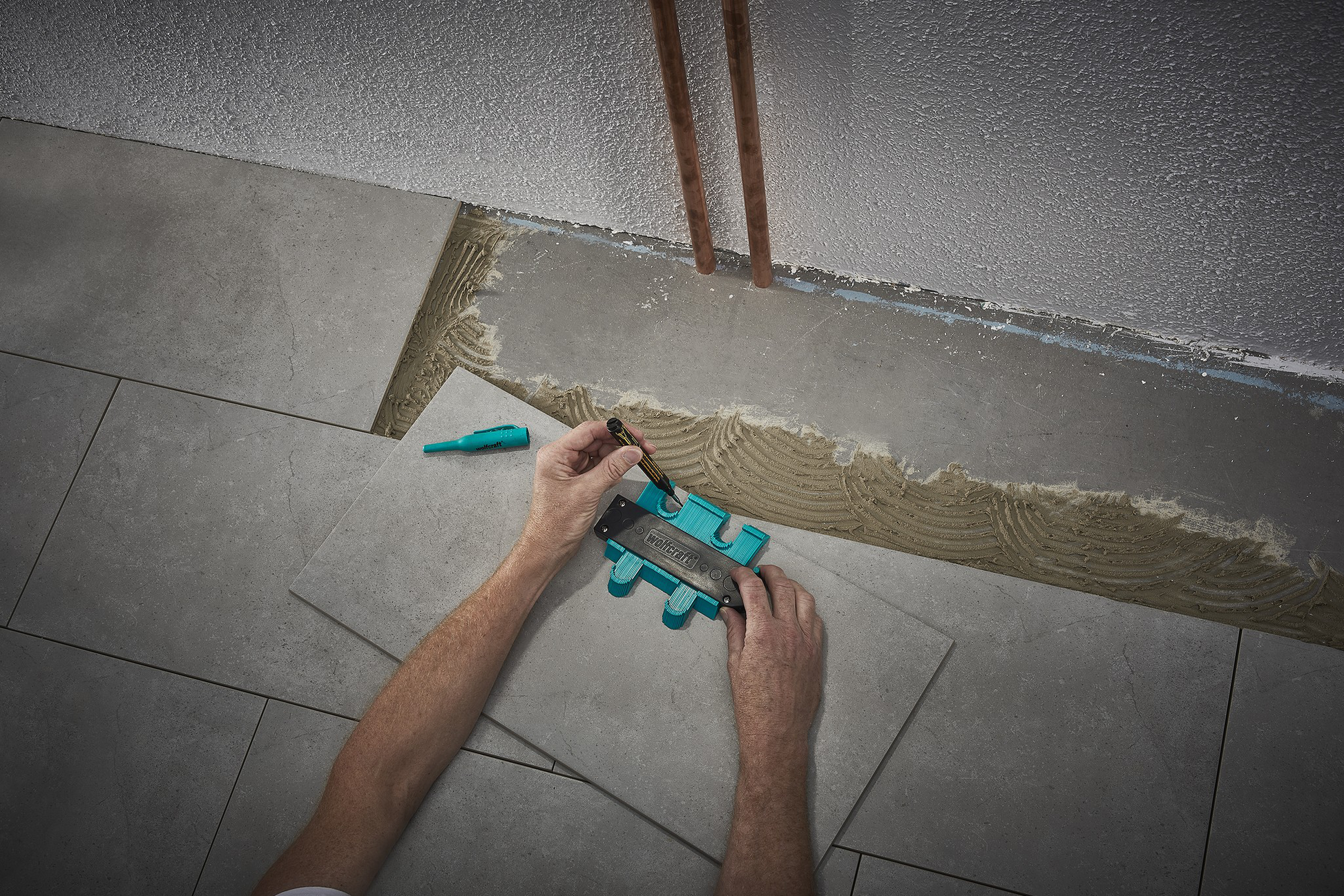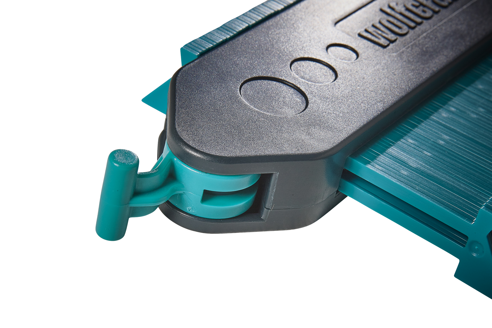 Lorsque vous souhaitez reproduire exactement des contours et des tracés de découpe et les transférer sur une pièce, le copieur de contour vous est d'une aide précieuse. Idéal lorsque vous devez découper autour des tuyaux de chauffage ou d'autres obstacles lors de la pose de sol stratifié. Après le déverrouillage de la manette, poussez le gabarit sur le sol contre l'obstacle. Les lames se déplacent ainsi et vous montrent le contour exact. Après la fixation grâce à la manette, le contour reproduit est mieux conservé et vous pouvez le transférer par la suite sans effort. Le copieur de contour vous permet également de reproduire des profilés complexes de manière précise et de les transférer sur un autre composant. Les erreurs de mesure et les imprécisions font désormais partie du passé.