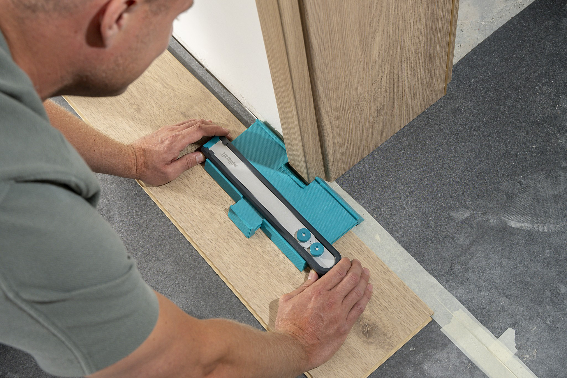 Le copieur de contour PRO apporte une aide précieuse lorsque vous souhaitez relever avec précision des contours ou des tracés d'une largeur maximale de 250 mm et d'une profondeur max. de 58 mm. Il est idéal lors de la pose de stratifié, pour contourner les huisseries de porte ou les tuyaux de radiateur. Après avoir débloquer les lamelles, poussez le copieur à plat à même le sol contre la pièce à détourer. Les lamelles sont repoussées et reproduisent exactement le contour à découper. Après verrouillage à l'aide du levier, le copieur conserve la forme du contour et vous pouvez alors le transférer sur la pièce. La glissière réglable permet de repérer facilement la position du copieur et de la reporter sur la pièce à travailler. La glissière s'étend jusqu'à 700 mm, ce qui permet l'utilisation du copieur avec les lames de stratifié. Vous pouvez régler la butée de la glissière pour obtenir un transfert précis des dimensions. Le copieur de contour PRO comporte un mécanisme d'excentrique breveté avec lequel vous pouvez régler la force de maintien des lamelles au besoin. Vous optez pour un produit durable et robuste grâce à une fabrication en plastique de haute qualité.