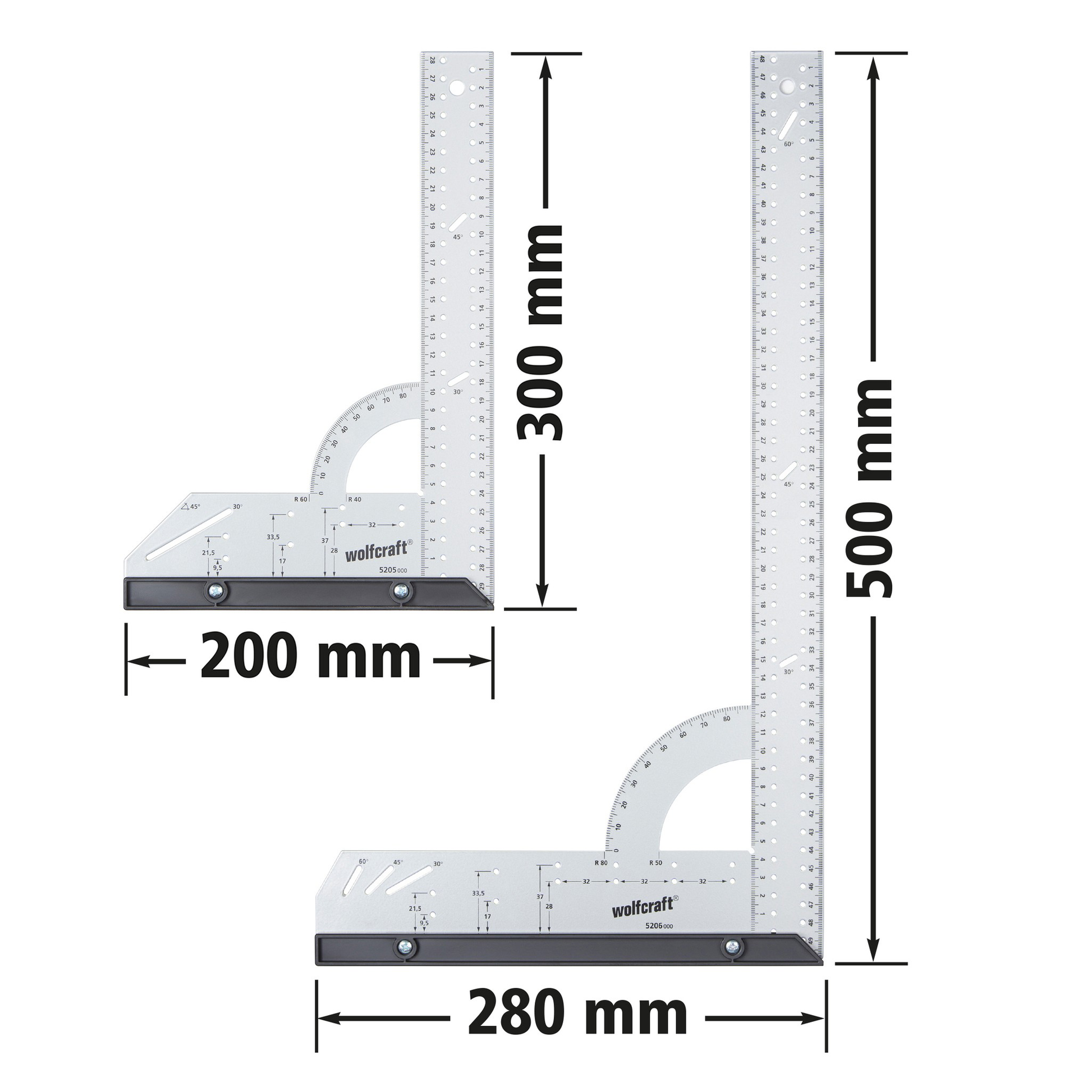 deux équerres multifonction de 300 mm et 500 mm pour mesurer, tracer, dessiner et réaliser des coupes guidées