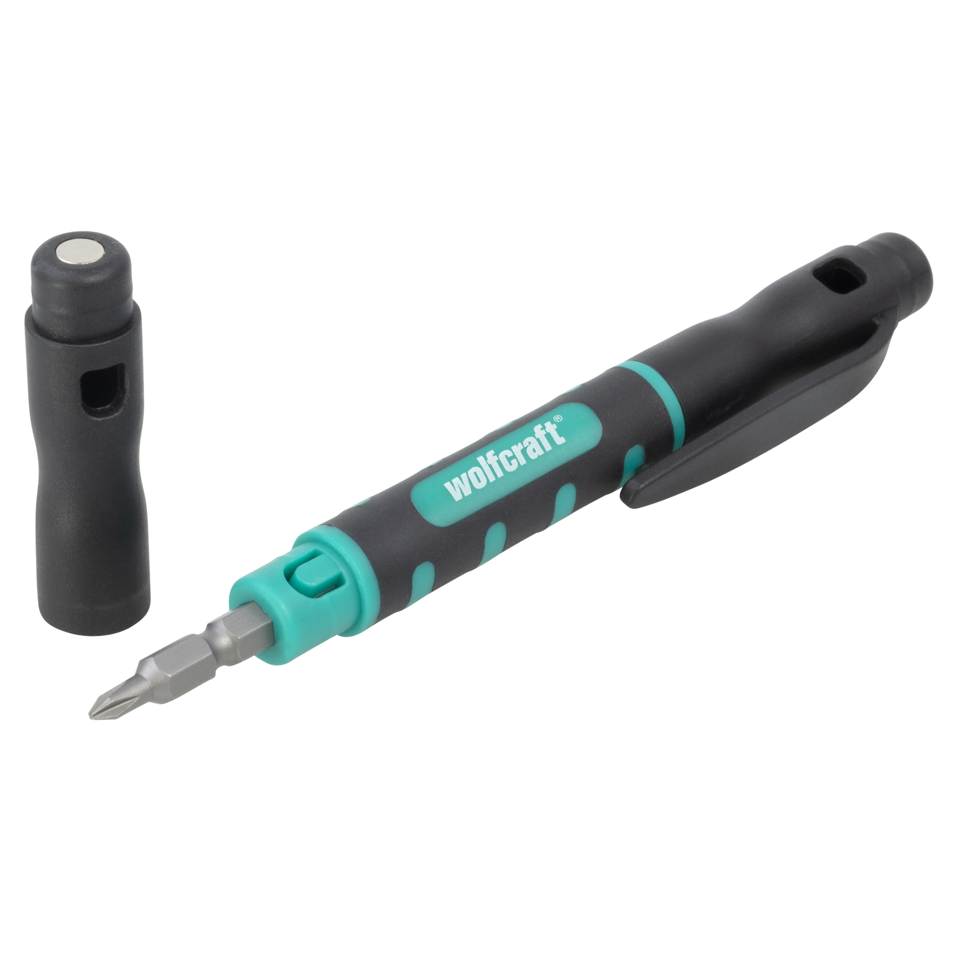 Pour changer d’embout, il suffit de le tourner dans son logement. Grâce à sa forme de stylo, cet accessoire pratique et malin peut être transporté facilement dans une poche de pantalon, ou s’accrocher à la ceinture grâce au clip intégré. Un aimant sur le capuchon du stylo pour micro-embouts vous aide à positionner la vis. Serrer des vis devient un jeu d’enfant.